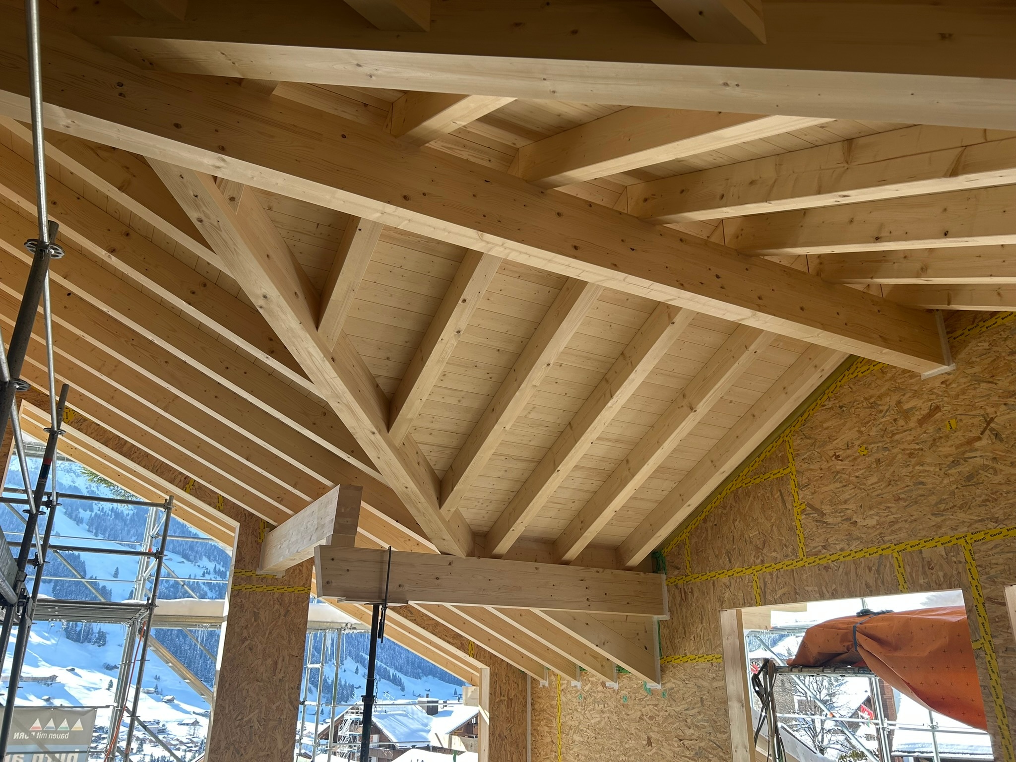 Aufrichtarbeiten beim MFH Montana Adelboden